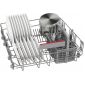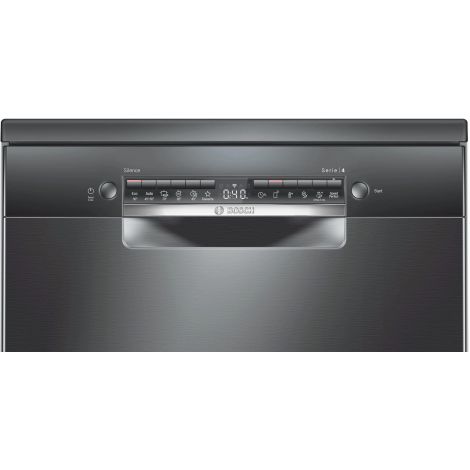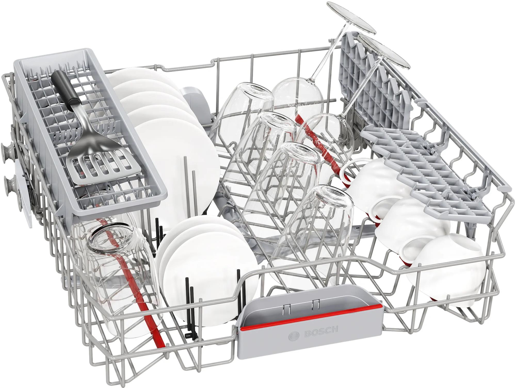 Посудомийна машина Bosch Serie 4 SMS4IKC62T — це сучасний і ефективний прилад, який поєднує в собі технологічну досконалість, функціональність і комфорт у щоденному користуванні. Завдяки повногабаритному формату, вона розрахована на 13 і більше комплектів посуду, що ідеально підходить для великої родини або активної кухні. Машина працює з інверторним двигуном EcoSilence Drive, який гарантує низький рівень шуму — 48 дБ, високу продуктивність і тривалий термін служби. Об’єм витрати води — 9,5 л за цикл, електроенергії — 0,836 кВт-год, що забезпечує високу економічність (енергоефективність класу A++ (D)). Користувачеві доступні 6 програм миття: інтенсивна 70°, авто 45–65°, економна 50°, експрес 65° (1 година), експрес 45° і «Улюблена». Завдяки п’яти температурним режимам і великому вибору функцій (SpeedPerfect, гігієна+, попередня обробка, додаткове ополіскування), машина адаптується до будь-якого типу забруднень і посуду. Особливу увагу заслуговує дистанційне керування через застосунок Home Connect, завдяки якому можна запускати або налаштовувати цикл з будь-якої точки світу. Передбачено таймер відтермінування старту, захист від дітей, а також система технології захисту скла, що дозволяє дбайливо мити тендітні келихи. Користувач отримує зручну електронну панель керування з дисплеєм, яка відображає залишковий час, наявність солі, ополіскувача і стан програм. Верхній короб оснащено 3-рівневою системою регулювання висоти, що полегшує завантаження каструль і великих тарілок у нижню корзину. Модель виготовлена з нержавіючої сталі, має конденсаційний тип сушіння, стильний чорний корпус і повну комплектацію для монтажу. Завдяки можливості використання таблеток «все в 1» і ретельній системі ополіскування, Bosch SMS4IKC62T забезпечує високу якість миття та сушіння (клас A) при кожному циклі.