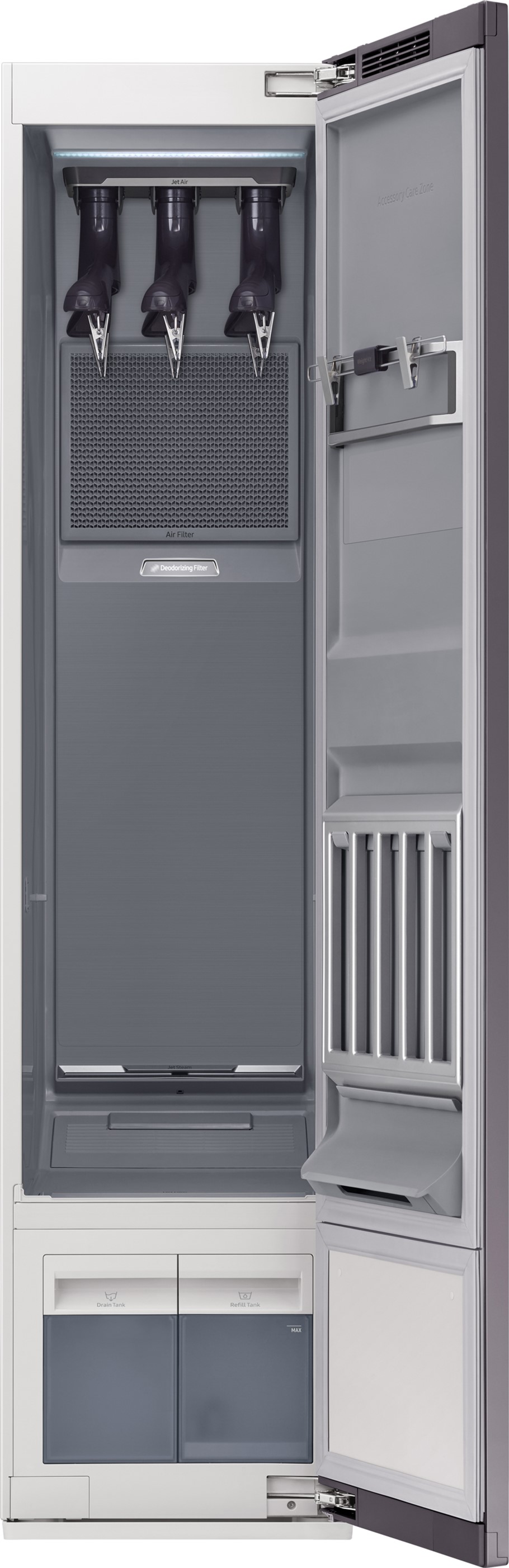 Устранение бактерий, вирусов и аллергенов. Технология JetSteam Технология Jet Steam обеспечивает гигиеническую очистку и освежение вашей одежды, благодаря системе мощных потоков высокотемператуного пара Jet Air, который проникает глубоко внутрь тканей и устраняет 99.9% вирусов и бактерий, 100% пылевых клещей, 99% запахов и 99% прочих вредных веществ*. * Устраняет: 1) 99,9% 4 видов вирусов (аденовирус, грипп, коронавирус и вирус герпеса) по результатам тестирования в лаборатории Корейского университета с использованием режима Гигиена. 2) 99,9% 2 типов бактерий (кишечная палочка и стафилококк), 99% запахов, переносящихся по воздуху (Изо-валериновая кислота: пот; 4-этинилпиридин: табак; Валеральдегид: продукты питания, например, мясо на гриле; и Тетрахлорэтилен: химчистка) на основе тестирования, проведенного Intertek с использованием режима Освежение. 4) 99% вредных веществ (перхлорэтилен) по результатам тестирования Intertek с использованием режима Освежение. Индивидуальные результаты могут отличаться в зависимости от фактической ситуации использования. * Убивает : 1) 100% пылевых клещей, по результатам тестирования, проведенного Intertek / BAF сертификацией с использованием режима Гигиена. Устранение запахов и восстановление свежести одежды Дезодорирующий фильтр Паровой шкаф AirDresser оснащен дезодорирующим фильтром для устранения запахов. Фильтр улавливает и удаляет 99% неприятных запахов, включая запахи от пота, табака, жареного мяса и химчистки*, и предотвращает их накопление на одежде. *На основании тестирования Intertek с использованием обычного режима: изо-валериановая кислота: пот, 4-этенилпиридин: табак, валеральдегид: жареное мясо, и тетрахлорэтилен: химическая чистка. Проверено на изо-валериановую кислоту и 4-этенилпиридин на основе стандарта KS K0891. Индивидуальные результаты могут различаться в зависимости от фактической ситуации использования. Деликатная сушка при низкой температуре Технология сушки HeatPump Технология HeatPump бережно и аккуратно высушит вашу одежду. Она предотвращает усадку и повреждения одежды, используя низкую температуру сушки благодаря слаженной работе двух технологий – потоков воздуха JetAir сверху и теплового насоса HeatPump снизу. Вместе они улучшают циркуляцию воздуха внутри шкафа и равномерно высушивают вашу одежду. Меньше складок. Меньше глажки. Технология Wrinkle Care Опрятный внешний вид без глажения! Технология Wrinkle Care использует сочетание пара и воздуха, уменьшая и разглаживая складки на вашей одежде так, что можно одевать ее, не затрачивая время на глажение. Технология устраняет до 100% складок на шерстяной одежде и до 80% складок на одежде из вискозы*. *На основании независимого тестирования Intertek с использованием нормального режима в соответствии со стандартами KS K 0891 и ISO 9867. После использования AirDresser эффективность разглаживания складок на одежде из шерстяных тканей составила 100%, а на вискозных – 80%. Быстрое и бесшумное удаление пыли с одежды Система Jet Air + Технология Air Hanger Благодаря системе мощных воздушных потоков Jet Air и специальным воздушным вешалкам Air Hangers одежда полностью продувается изнутри наружу и в двух направлениях – вверх и вниз. Такая система эффетивно устраняет глубоко въевшуюся пыль из тканей практически бесшумно и без вибрации*! *На основании внутреннего тестирования уровень шума составляет 42,8 дБ в обычном режиме и 37,8 дБ в бес
