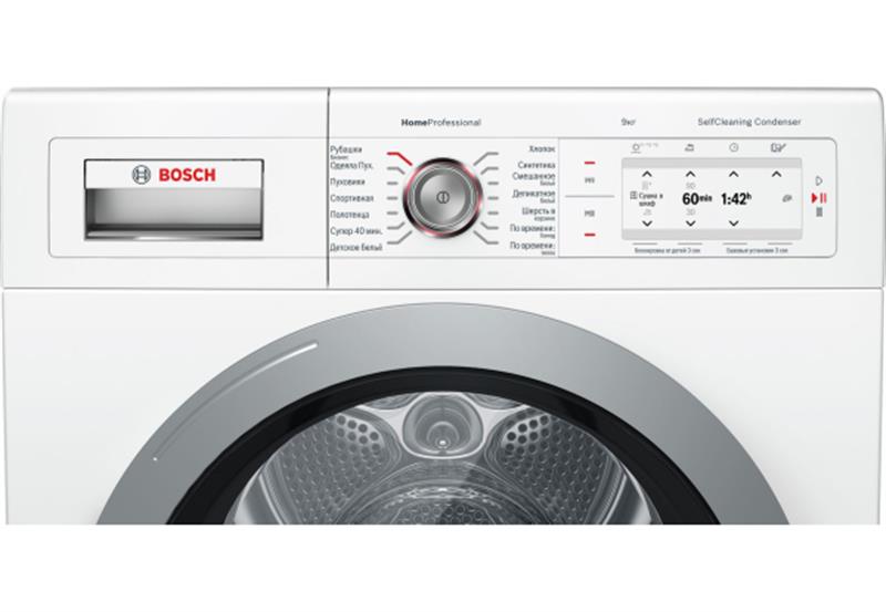 Эффективно высушить до 9 кг белья вам поможет сушильная машина Bosch WTY87781OE. Модель изготовлена с использованием последних технологий и материалов, чтобы вы почувствовали профессиональный уровень работы в домашних условиях. Устройство бережно относится ко всем видам тканей, даже самым деликатным, так как уникальный барабан изготовлен по технологии SensitiveDrying. Сушильная машина Bosch WTY87781OE способна заменить вам химчистку, так как вы сможете самостоятельно стирать и сушить пуховики, подушки и одеяла. Широкий люк для загрузки белья поможет во время работы с крупногабаритными вещами. Панель оснащена поворотным регулятором и сенсорными клавишами, чтобы вы могли осуществить управление без лишних затруднений. Большим преимуществом модели является использование самоочищающегося конденсатора – SelfCleaning Condenser.