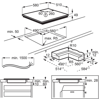 | Функції | Stop&Go, розпізнавання посуду, функція Bridge об'єднує дві звичайні конфорки в одну велику, турбо-режим, функція автоматичного прискорення приготування, індикатор залишкового тепла, автоматичне вимкнення, звуковий сигнал, функція cleverheat, дисплей, підсвітка панелі керування, захист від дітей, сенсор кипіння |