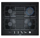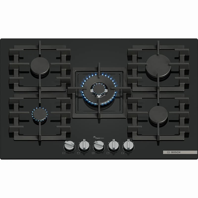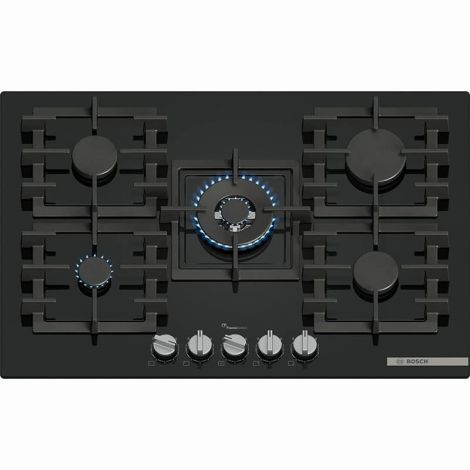 Газова варильна поверхня Bosch Serie 6 PPQ7A6I45 — це потужний п’ятиконфорочний пристрій з преміальним дизайном і розширеним функціоналом для вимогливих користувачів. Її елегантна чорна поверхня із загартованого скла поєднується з чавунними окремими решітками, які не лише забезпечують надійність, а й легко знімаються для миття, зокрема в посудомийній машині. Центральною перевагою моделі є наявність WOK-конфорки з подвійним рядом полум’я, потужністю 4000 Вт — ідеальне рішення для приготування страв на високому вогні. Загалом панель обладнана п’ятьма конфорками: ліва передня — 1000 Вт, ліва задня та права передня — по 1750 Вт, права задня — 3000 Вт. Завдяки 9-ступеневому регулюванню полум’я FlameSelect, Ви отримуєте точний контроль інтенсивності нагріву для ідеального результату. Автоматичний електропідпал інтегрований у ручки керування.