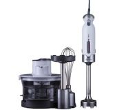 Литровый измельчитель поможет справится с большим количеством кулинарных задач. Металлическая нога с двумя дисками – насадка для пюре и джема. В комплекте блендера венчик из нержавеющей стали и подставка для хранения.