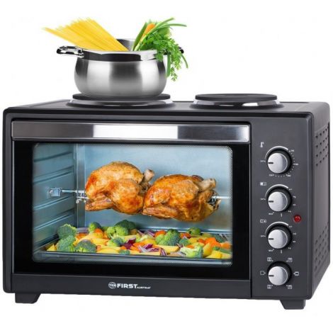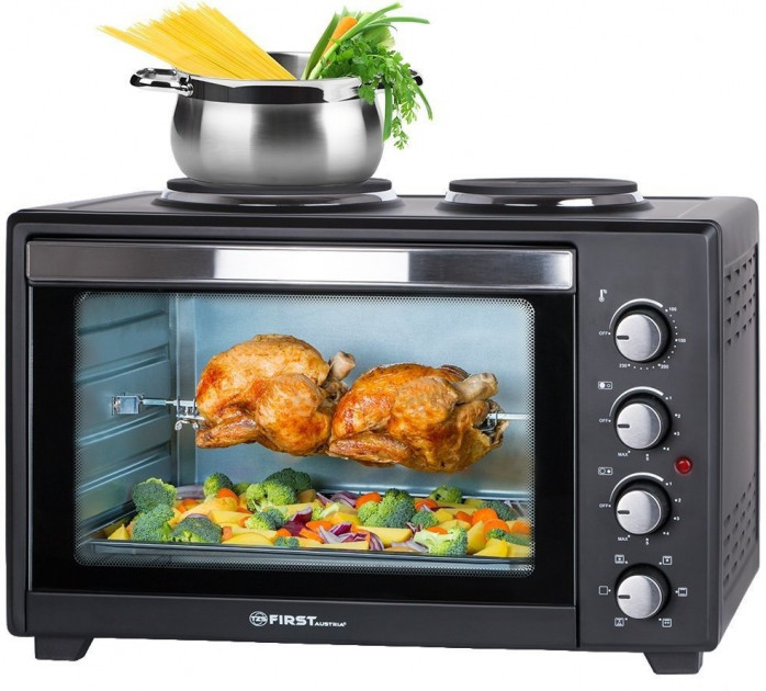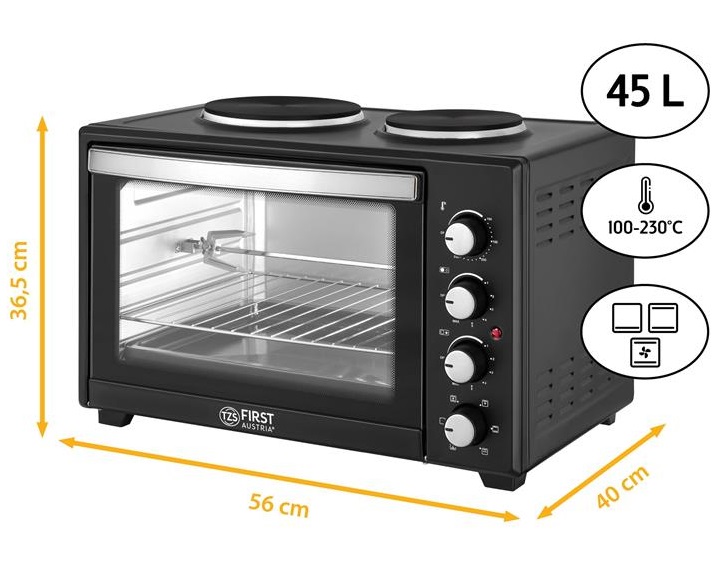 Готуйте та випікайте одночасно: містка міні-духовка пропонує сучасну технологію конвекції до 230°C, а також дві конфорки, що керуються окремо. Випікайте, смажте на грилі, смажте, тостуйте - рівномірна циркуляція тепла доводить кожну страву до досконалості, поки ви розслабляєтесь і дбаєте про повні каструлі на конфорках. Доступні три або чотири висоти вставки для роботи з верхнім нагріванням, нижнім нагріванням і конвекцією. Найкращі страви рівномірно і хрустко готуються на рожні, що обертається. Залишки їжі збираються на мобільному піддоні для крихт, який легко миється.