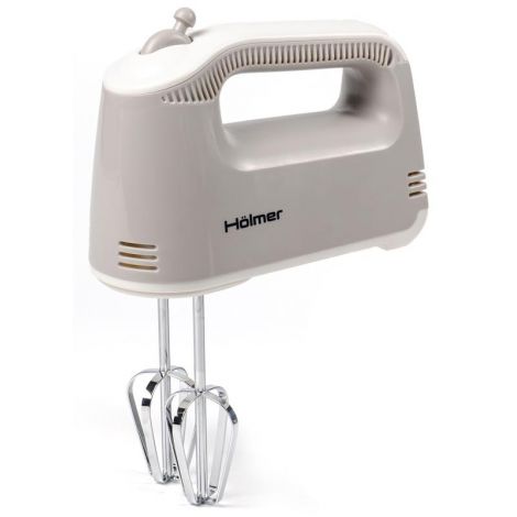 Модель Holmer HHM-40 покращеної ергономічної форми представлена у строгому сірому кольорі. Корпус міксера виготовлений з якісного пластику, а потужні вінчики для збивання та гаки для замішування тіста – хромованої сталі.