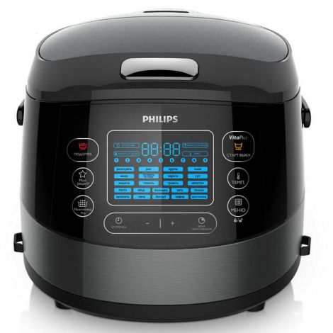 Компактная и многофункциональная мультиварка от компании PHILIPS – это идеальный вариант для потребителей, желающих каждый день баловать себя вкусной домашней пищей, затрачивая минимум времени на процесс приготовления. Этот полезный на кухне бытовой прибор приготовит за Вас любое блюдо и порадует прекрасными результатами. Чаша объемом в 5 литров с нанокерамическим покрытием ProKeram легко моется в посудомоечной машине.