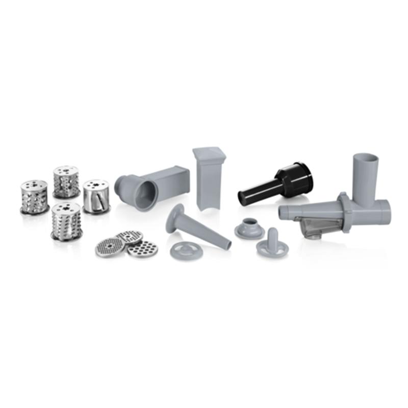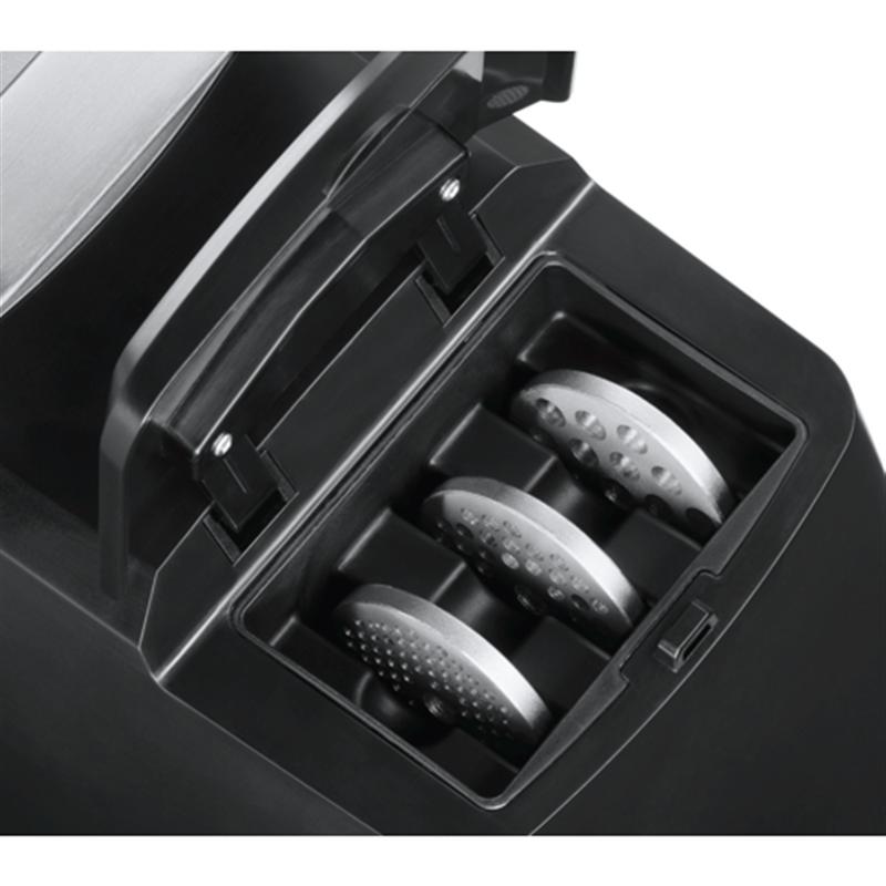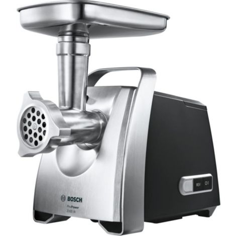Стильный дизайн мясорубки Bosch MFW 68660 станет прекрасным дополнением к созданному интерьеру кухни, а мощности будет достаточно, чтобы во много раз облегчить работу домохозяек и любительниц куховарить. С застрявшей и намотавшейся на ноже мясорубки жилой легко поможет справиться реверс. Длительную и качественную работу мотору мясорубки Bosch MFW 68660 гарантирует специальная защита от перегрева. Четыре специальные терки цилиндрической формы упростят процесс натирания разных продуктов, а овощерезка ускорит приготовление овощных блюд. Электромясорубка укомплектована специальной насадкой, позволяющей выдавить сок с фруктов и овощей, что делает ее более универсальной и многофункциональной. Для удобной подачи продуктов на шнек Bosch MFW 68660 предусмотрен специальный лоток и толкатель.