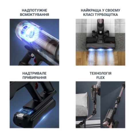 | Особливості | вертикальна парковка, з індикатором заповнення пилозбірника, прогумовані колеса, зберігання на підставці, індикатор зарядження акумулятора |