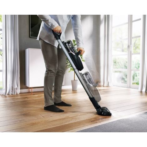 Идеальная высота для каждого: телескопическая труба модели Pure F9 позволяет отрегулировать высоту, чтобы вам было удобно. Пылесос Pure F9 точно сбалансирован, а благодаря уникальному скользящему блоку и низкому центру тяжести отсутствует нагрузка на кисть и улучшена маневренность.