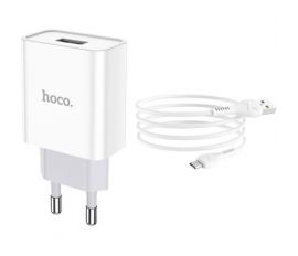Зарядний пристрій HOCO C81A Asombroso USB + cable Micro 5P 10.5W White (6931474727954)