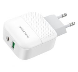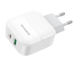 Зарядний пристрій BOROFONE BA46A USB-C PD + USB QC3.0 18W white (6931474727343)