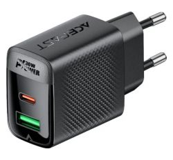 Зарядний пристрій Acefast 2xUSB 30W (USB-C+USB-A) Gan A98 Black (6974316283263)