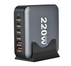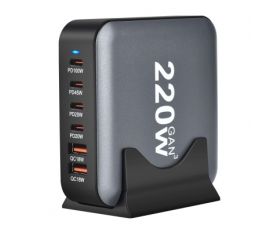Зарядний пристрій XoKo 1xUSB-С PD100W + 1xUSB-С PD45W + 2xUSB-С PD20W + 2xUSB QC18W 220W GaN (QC-220)