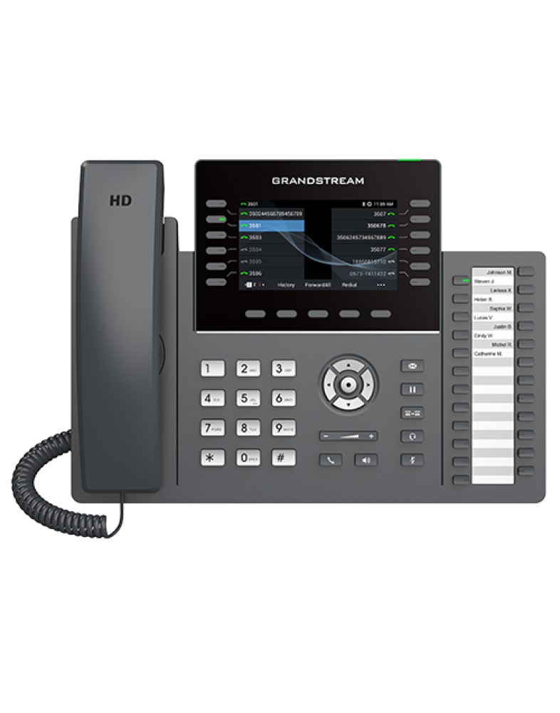 Grandstream GRP2636 - професійний IP-телефон з підтримкою 12 ліній та автоматичним налаштуванням для простого розгортання та керування. Модель відрізняють стильним дизайном та передовими функціями, включаючи підтримку аудіо-конференц-зв’язку для ефективної взаємодії (до п’яти учасників), вбудовані модулі PoE та Wi-Fi, чіткий HD-звук динаміка та гарнітури. Серія GRP включає функції безпеки операторського класу для розгортання в корпоративних інфраструктурах, у тому числі безпечне завантаження, два способи прошивки та сховище даних із шифруванням. Телефони GRP2636 підтримуються системою керування пристроями Grandstream Device Management System (GDMS) – хмарним центром налаштування, ініціалізації, керування та моніторингу розгортань кінцевих точок Grandstream. Grandstream GRP2636 відмінне рішення для секретарів та інших співробітників компанії, які здійснюють та приймають велику кількість дзвінків. GRP2636 розроблений для простого використання та швидкого розгортання на великих підприємствах, у компаніях постачальників послуг та інших організаціях з великим обсягом телефонного трафіку.
