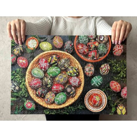 Більшість писанок, які зображені на пазлі намальовані писанкаркою зі Львова Вірою Манько (1956 р.н.), яка є популяризаторкою української народної культури. Писанкарством почала займатися з 1986 року. Вона є членкинею львівського осередку Національної спілки майстрів народного мистецтва України. Власноруч розписала більше трьох тисяч писанок різних регіонів України. Нині вона є власницею найбільшою приватної колекції, до якої входить понад 3 500 власноруч зроблених відтворень давніх і сучасних артефактів, та писанок, придбаних на щорічних передвеликодніх ярмарках.
