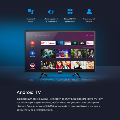 Bravis 24K5000H оснащений інтегрованими ТВ-тюнерами: DVB-C, DVB-S2, DVB-T і DVB-T2. Саме завдяки підтримці цифрового мовлення вам ніколи не доведеться стикатися з проблемами неякісної трансляції через особливості розводки у вашому будинку. Широкі можливості підключення забезпечені повним набором сучасних інтерфейсів. Серед них: HDMI, USB, Ethernet, антенний вхід, аудіовихід для навушників.